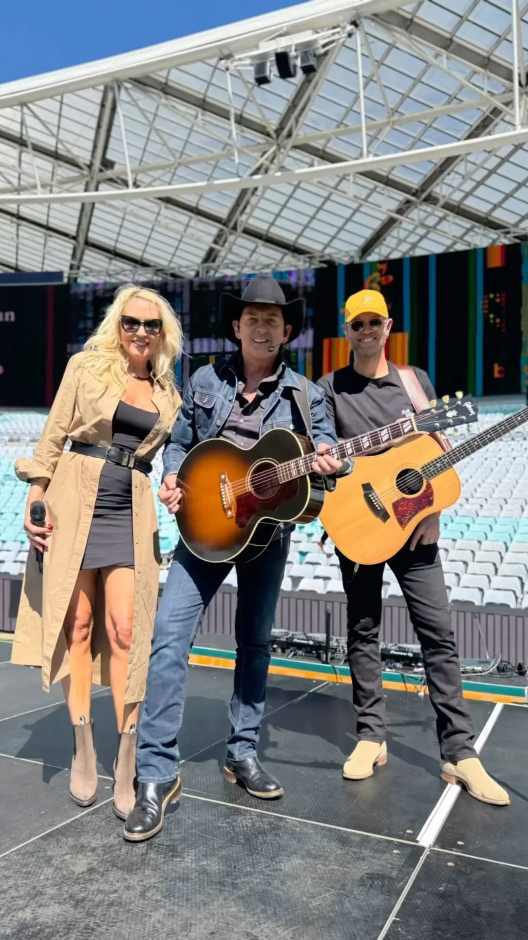 Performing on the Grand Ole Opry, with Andrew Farriss and Keith Urban.